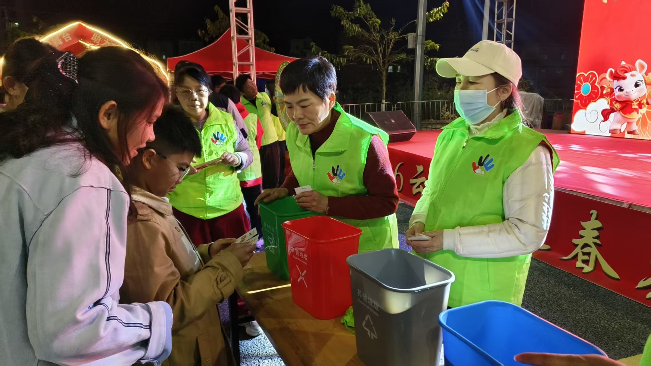 新春将至,年味正浓。2月9日晚,云浮市迎春花街灯火璀璨,人流如织,一场别开生面的“新年新风尚·分类我先行”垃圾分类主题宣传嘉年华活动在此欢乐上演。活动由云浮市住房和城乡建设局联合共青团云浮市委员会、云浮市融媒体中心、云浮市志愿者联合会、云城区城市管理和综合执法局等多个单位共同主办,旨在将垃圾分类理念融入传统年节,营造“人人参与、家家践行”的绿色新春氛围。