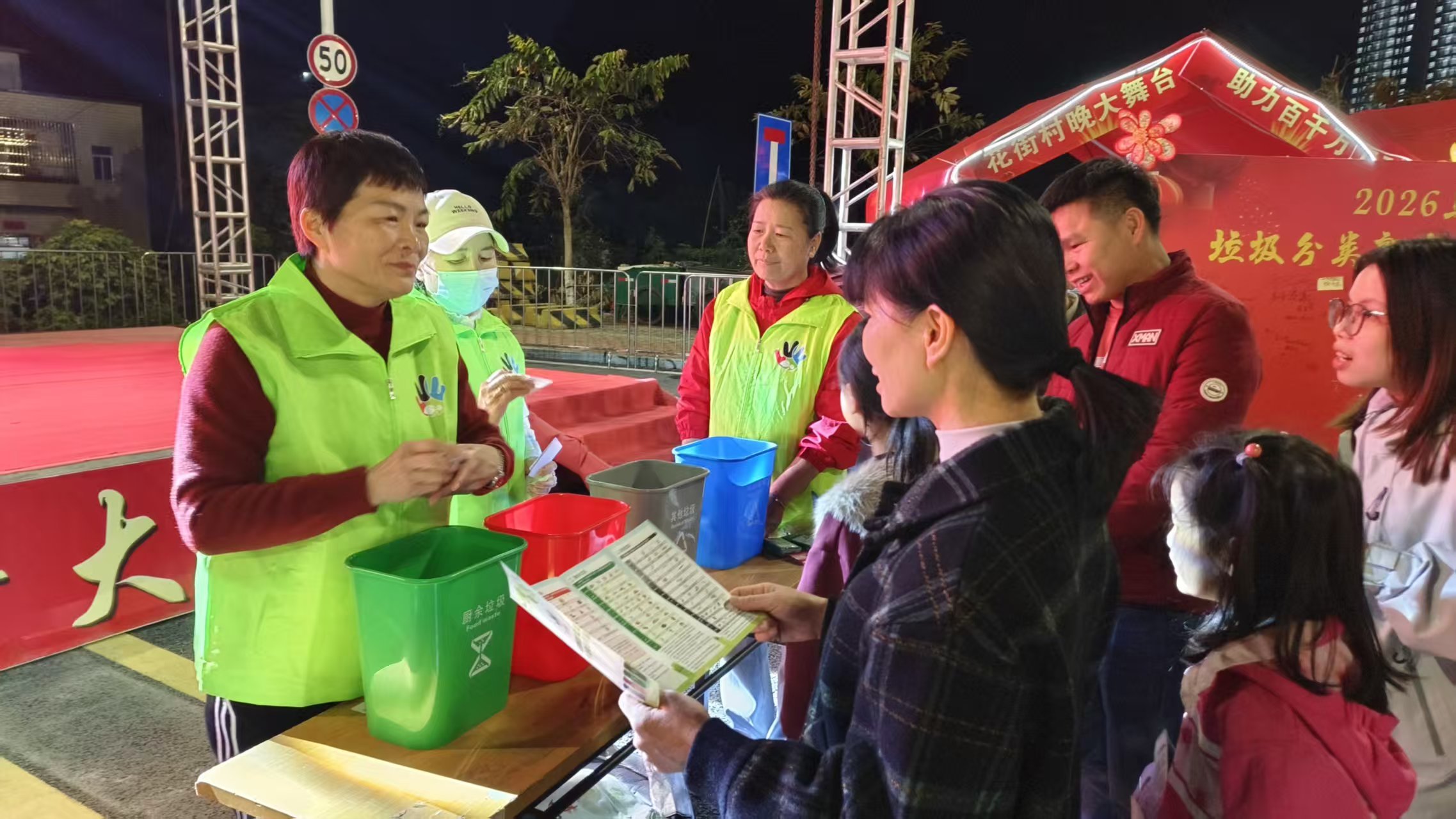 当晚19时30分,活动在喜庆热闹的开场中正式启动。主办方巧妙依托花市人流,通过趣味知识问答、精彩文艺表演、主题演讲及沉浸式游园体验等多种形式,向广大市民普及垃圾分类知识。问答环节紧扣年俗场景,“瓜子壳”“红包袋”“剩菜剩饭”“年花凋谢”“烟花爆竹屑”等贴近生活的题目引发市民热烈抢答,在互动中轻松学习了分类技巧。