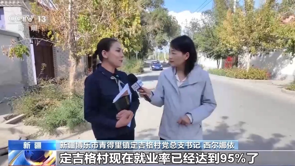 新疆博乐市青得里镇定吉格村党总支书记 西尔娜依:定吉格村现在就业率已经达到95%了,相当于每个人都有活干,每个人都有钱挣。